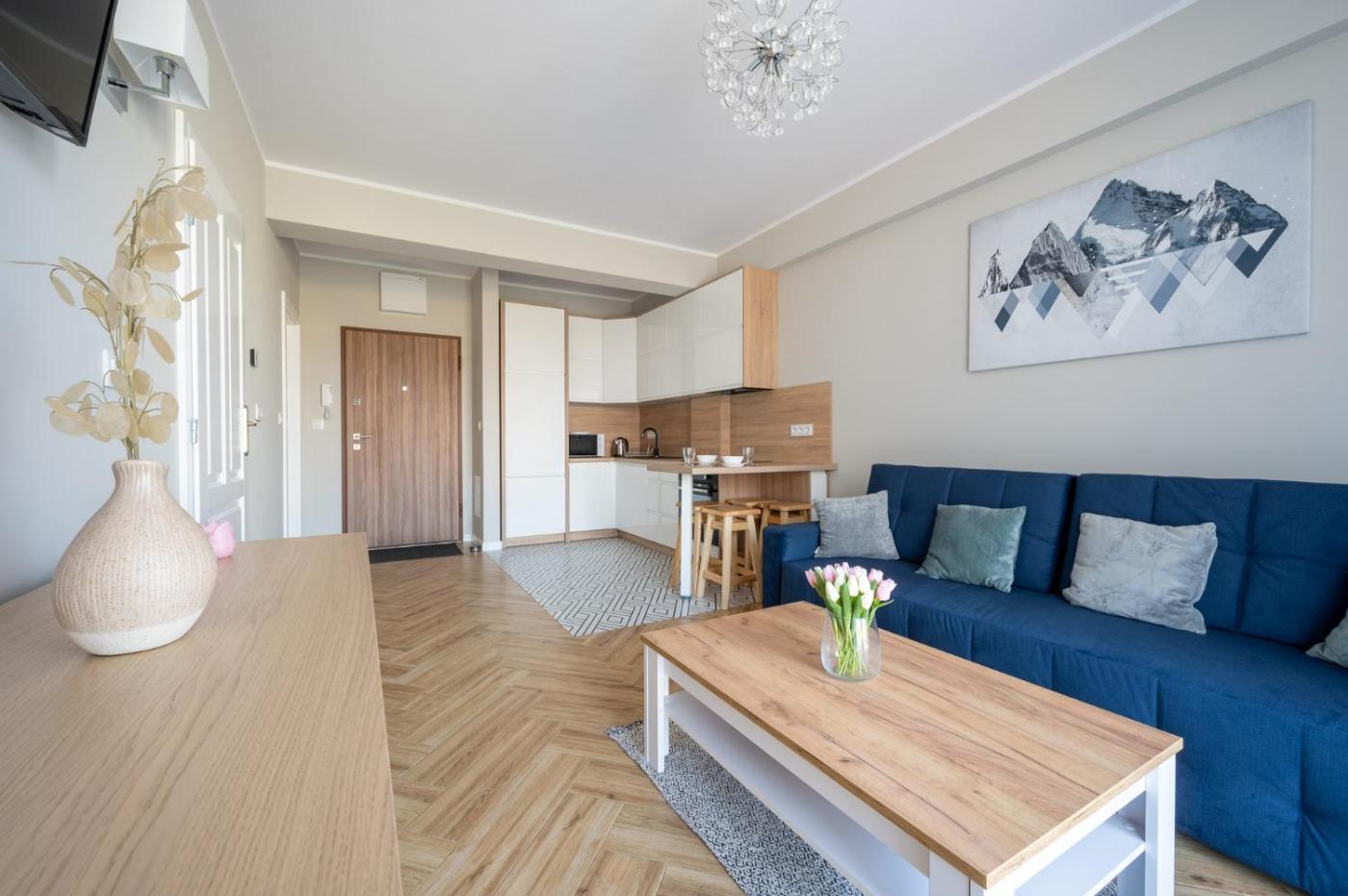 Apartament z 1 sypialnią. This apartment includes 1 living room, 1 separate bedroom and 1 bathroom with a bath and a bidet. In the kitchen, guests will find a refrigerator, a dishwasher, an oven and a microwave. Boasting a terrace with a quiet street view, this apartment also offers a washing machine and a flat-screen TV. The unit has 2 beds. Apartament - 4 osobowy. Powierzchnia pokoju ok.: 40 mkw.