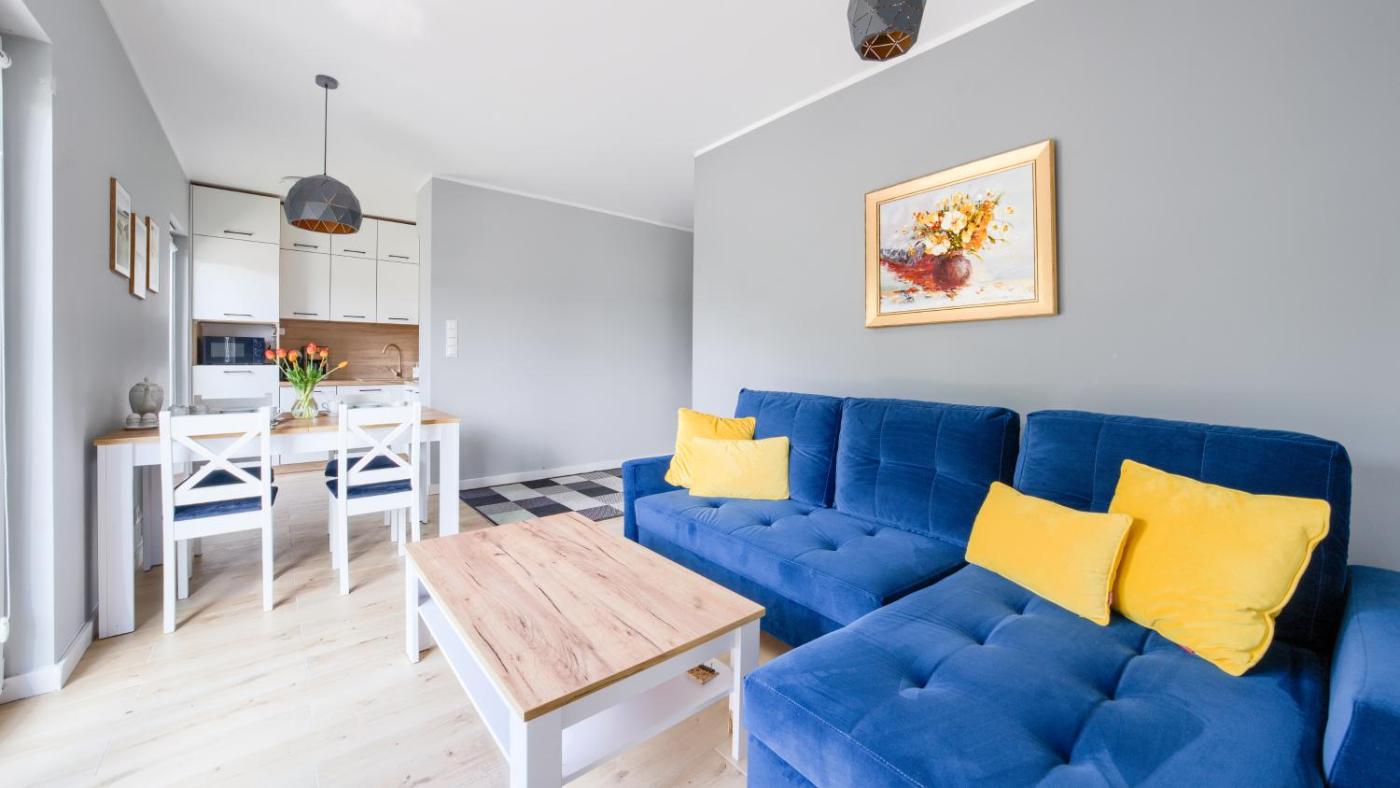 Apartament z 1 sypialnią. This apartment consists of 1 living room, 1 separate bedroom and 1 bathroom with a hairdryer. The well-equipped kitchenette features a stovetop, a refrigerator, a dishwasher and kitchenware. Featuring a balcony, this apartment also provides a coffee machine, a dining area and a flat-screen TV. The unit offers 2 beds. Apartament - 4 osobowy. Powierzchnia pokoju ok.: 38 mkw.