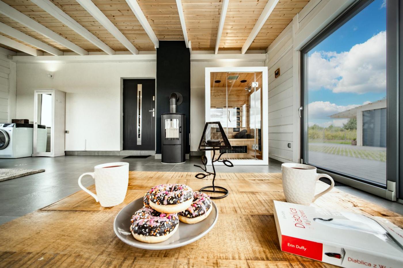 Zaplecze odnowy biologicznej obiektu Domek hot tub jacuzzi Chillout obejmuje saunę i wannę z hydromasażem.