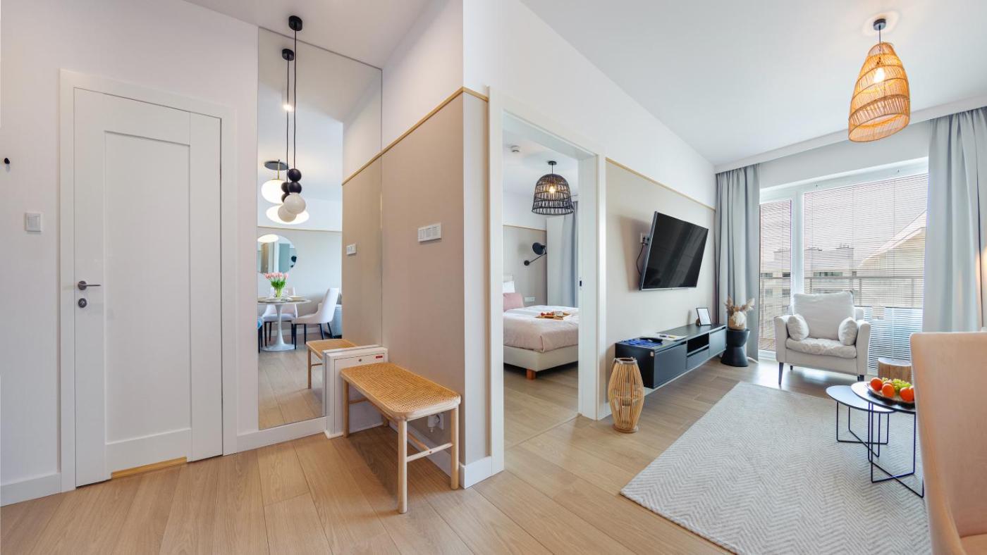 Apartament z 1 sypialnią. This apartments special features are the private pool and the sauna. In the well-fitted kitchen, guests will find a stovetop, a refrigerator, a dishwasher and kitchenware. Boasting a balcony with garden views, this apartment also features a washing machine and a flat-screen TV. The unit has 2 beds. Apartament - 4 osobowy. Powierzchnia pokoju ok.: 48 mkw.