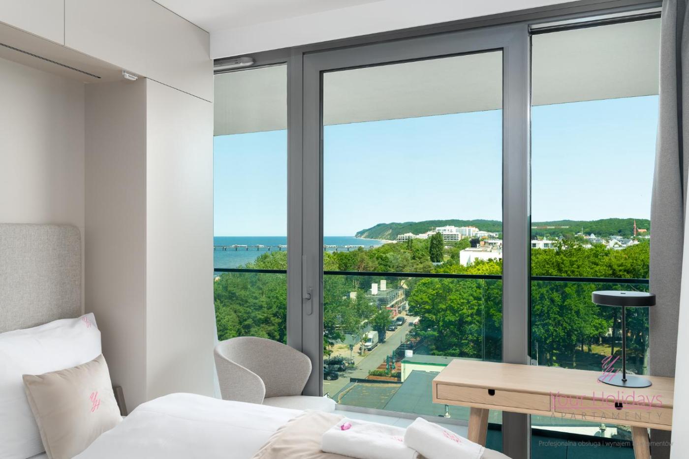 Apartament z 2 sypialniami. This apartments standout features are the private pool and sauna. This apartment includes 1 living room, 2 separate bedrooms and 1 bathroom with a walk-in shower and free toiletries. In the fully equipped kitchenette, guests will find a stovetop, a refrigerator, a dishwasher and a microwave. The air-conditioned apartment offers a flat-screen TV with streaming services, a washing machine, a tea and coffee maker, a dining area as well as sea views. The unit has 2 beds. Apartament - 4 osobowy. Powierzchnia pokoju ok.: 59 mkw.
