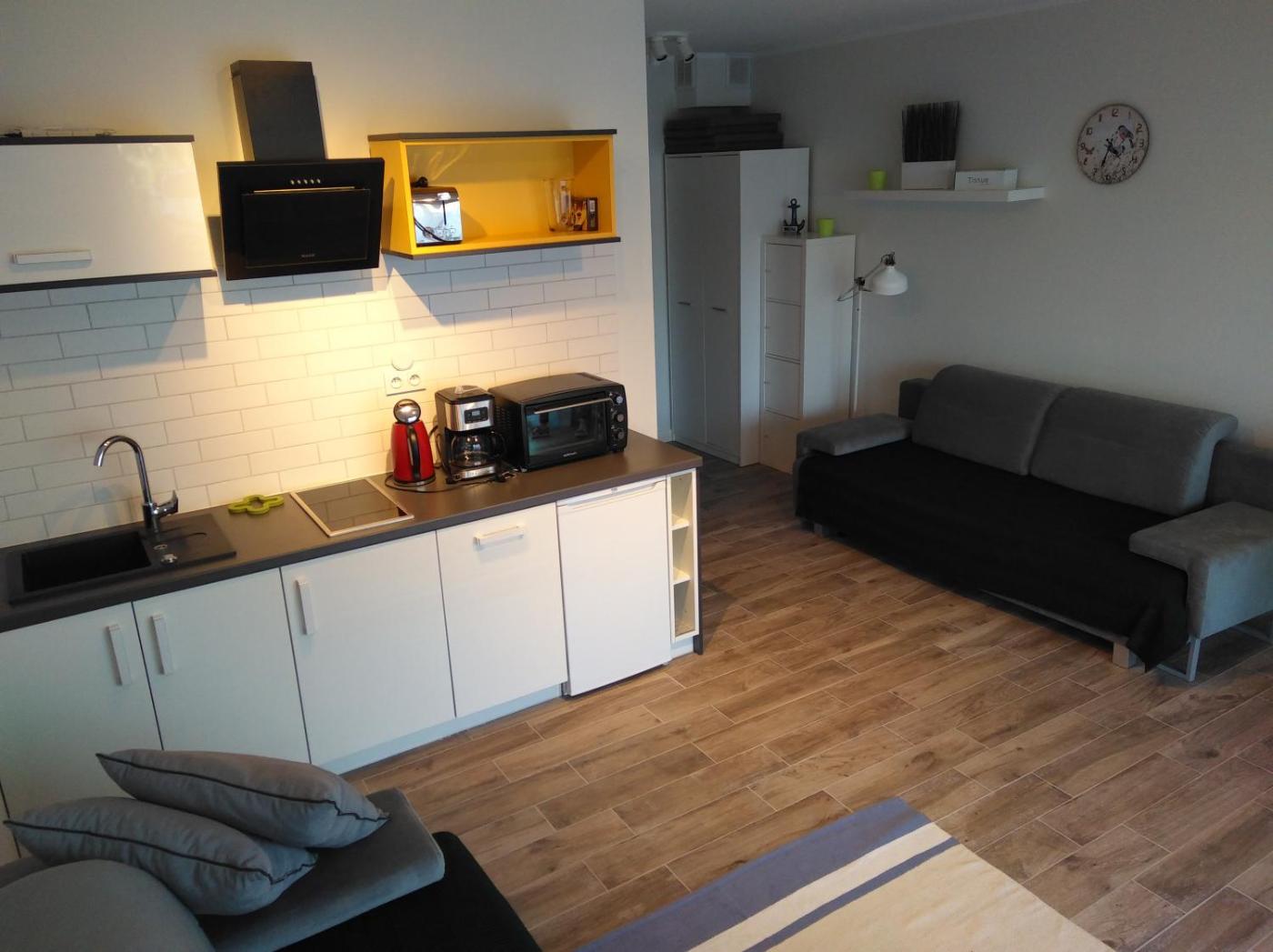 Apartament. Featuring a private entrance, this apartment also consists of 1 bedroom, a seating area and 1 bathroom with a shower and a hairdryer. The fully equipped kitchen features a stovetop, a refrigerator, a dishwasher and kitchenware. Boasting a terrace with garden views, this apartment also provides a washing machine and a flat-screen TV. The unit offers 2 beds. Apartament - 4 osobowy. Powierzchnia pokoju ok.: 30 mkw.