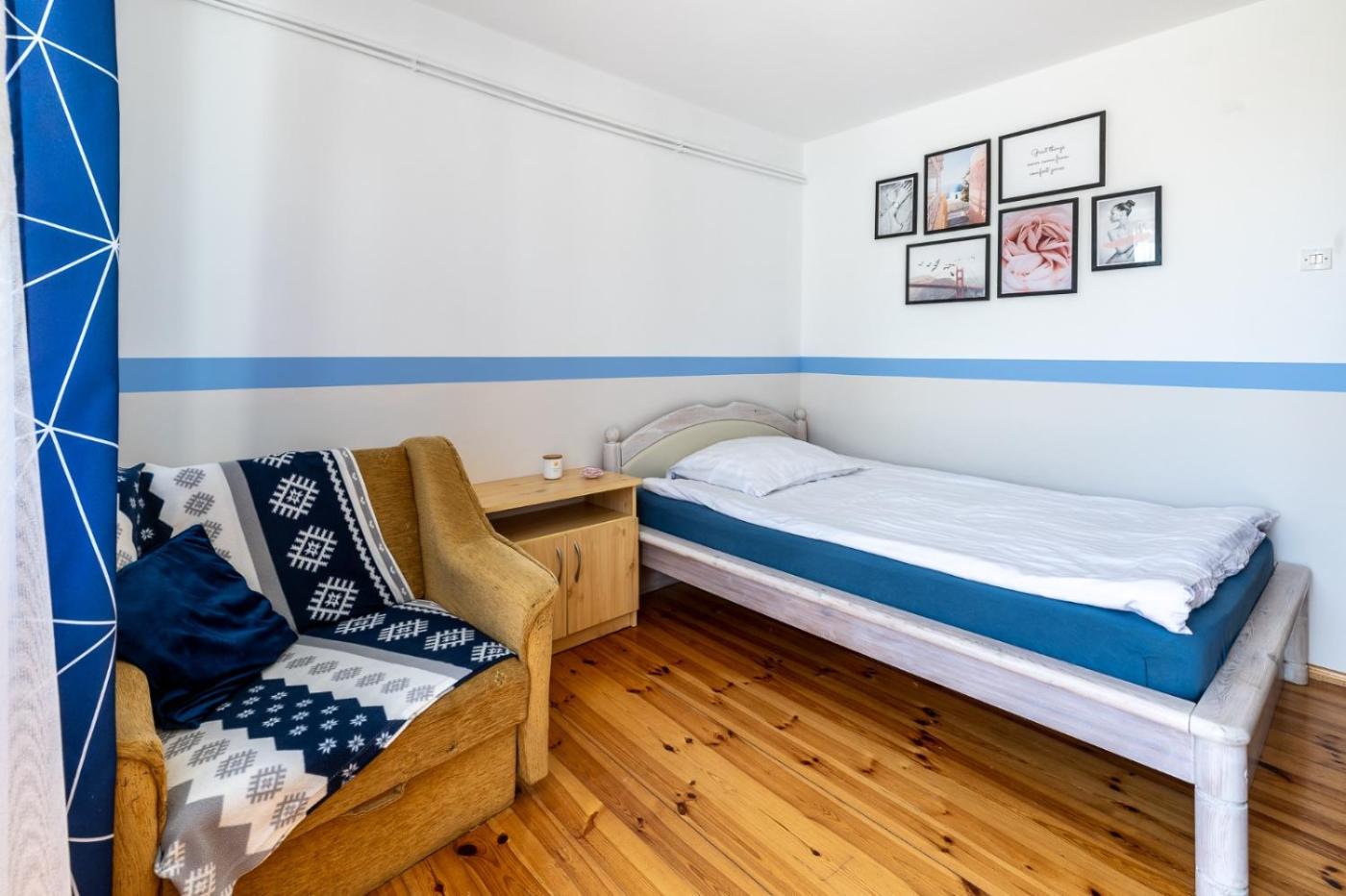 Pokój Trzyosobowy z prywatną łazienką. The triple room offers a private entrance, a seating area, a terrace with garden views as well as a private bathroom featuring a shower. The unit offers 2 beds. Pokój Trzyosobowy - 3 osobowy. ;