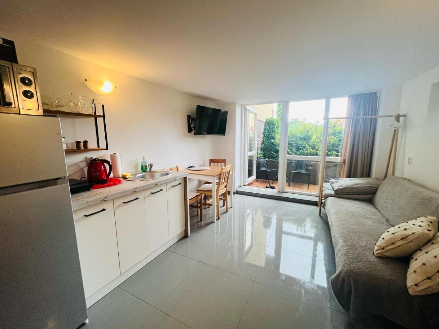 Apartament z 1 sypialnią. Featuring 1 bedroom, this apartment offers 1 bathroom with a shower, a seating area and terraceyou can relax. In the fully equipped kitchenette, guests will find a stovetop, a refrigerator, kitchenware and a microwave. The apartment offers a flat-screen TV, a private entrance, a dining area, an electric kettle as well as garden views. The unit has 2 beds. Apartament - 3 osobowy. Powierzchnia pokoju ok.: 16 mkw.