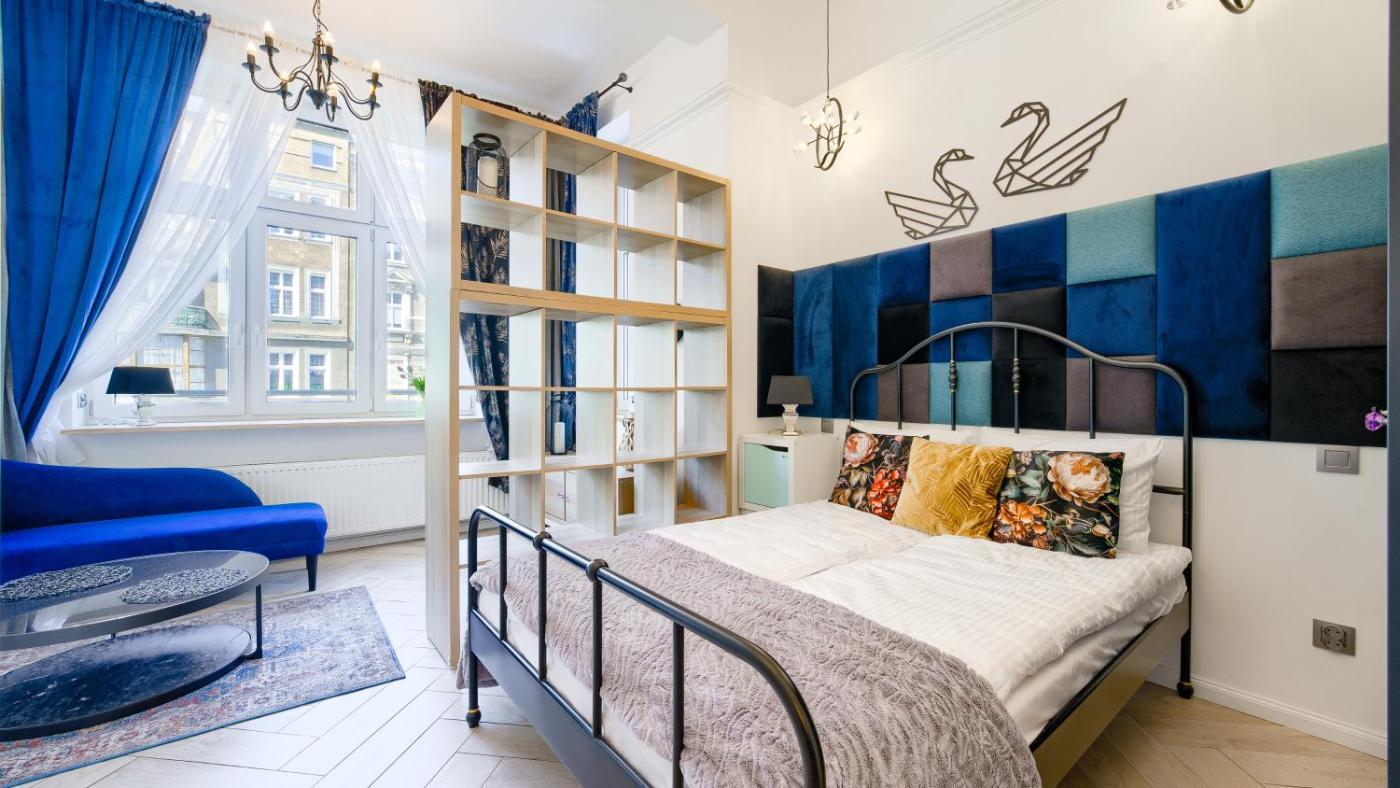 Studio. Meals can be prepared in the kitchenette, which features a stovetop, a refrigerator, a dishwasher and kitchenware. The studio features a washing machine and a wardrobe, as well as a private bathroom boasting a shower. The unit has 1 bed. Studio - 2 osobowy. Powierzchnia pokoju ok.: 28 mkw.